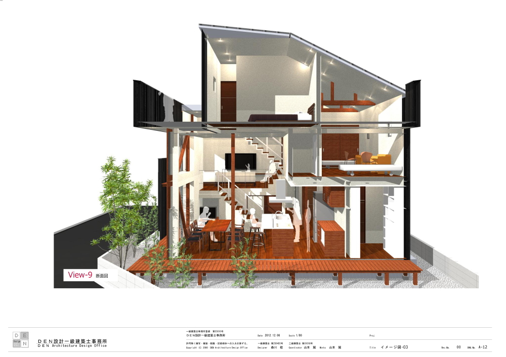 断面計画を見ると分かりやすいと思いますが、それぞれの空間がそれぞれの視覚変化が生まれる為、その変化を楽しみ、生活を豊かにすることを考えています。