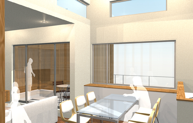 心地よい自然光が感じられるスキップフロアー空間 更新日:2015年5月8日 公開日:2015年2月3日 スキップフロアー住宅設計吹抜け外観注文住宅・デザイン住宅間取り 心地よい自然光が感じられるスキップフロアー空間|間取りデザイン03 2階へは、トップライトから差込む光に誘われながら階段を上ると、リビング・ダイニング・キッチンが一気に広がります。プライバシーを保つ木製ルーバーで囲まれた外部吹抜けが空間を広げます。近隣建物をルーバーで感じさせない工夫が自分だけの空を感じられる空間が豊かさになります。 心地よい自然光が感じられるスキップフロアー空間|間取りデザイン11 バルコニーは囲まれたルーバーでセカンドリビングとして広さを共有、ガラス間仕切りで空間に広がりを持たせる。家族と過ごす空間に+α”美しい光を感じられる瞬間が感じられる” 関連記事豊かさを感じる落ち着いた空間自然豊かな敷地に建てる広がる空間明かりが差し込む階段でつなげる家族の輪やわらかい日差しを感じながら朝を迎える空間家族が自然とリビングに集まる家明るい家族が過ごす明るく気持ちの良い家かっこいいデザインのスキップフロアー豊かな二つの吹抜けが交差する家絶景を生かしたパノラマ空間異なる床と天井が交差するスキップフロアーかっこいいデザインのスキップフロアースキップフロアーが家族をツナゲル家 12345 関連記事 明かりが差し込む階段でつなげる家族の輪豊かな二つの吹抜けが交差する家東南角地に建つ開放感溢れる家光がふりそそぐ中庭のある家自然光が降りそそぐ中庭のある家 投稿ナビゲーション 地下室がある光が差し込む家豊かさを感じる落ち着いた空間