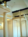 お婆さんと長く海外赴任されていたお孫さん家族が住む2世帯住宅に要求されるデザインは、日本の風土に根ざした凛とした規則正しい空間と、 自然木をふんだんに使った温かくやわらかいヨーロッパテイストだった。